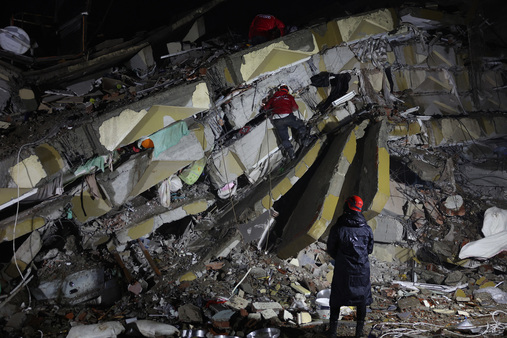 في شانلي أورفا في جنوب شرق تركيا، كان عشرات المسعفين يحاولون مساء الاثنين إخراج ناجين من بين أنقاض مبنى منهار من سبع طبقات.
