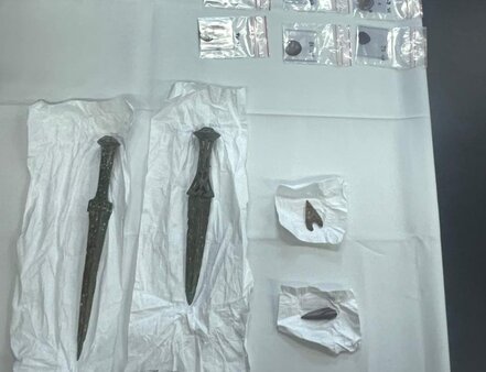 وأضاف أن: "القطع، تضمنت خنجرين من البرونز ورأسي رمح تعود لفترة 1000 سنة قبل الميلاد، فضلاً عن 20 قطعةً نقديةً قديمة من فترة الخلافة العباسية".