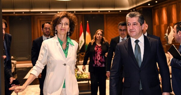دعا رئيس حكومة إقليم كوردستان مسرور بارزاني، خلال اجتماعه مع المديرة العامة لمنظمة الأمم المتحدة للتربية والعلم والثقافة (UNESCO) أودري أزولاي، اليوم الأربعاء (8 آذار 2023)، إلى قبول انضمام كوردستان عضواً مشاركاً في المنظمة الأممية.