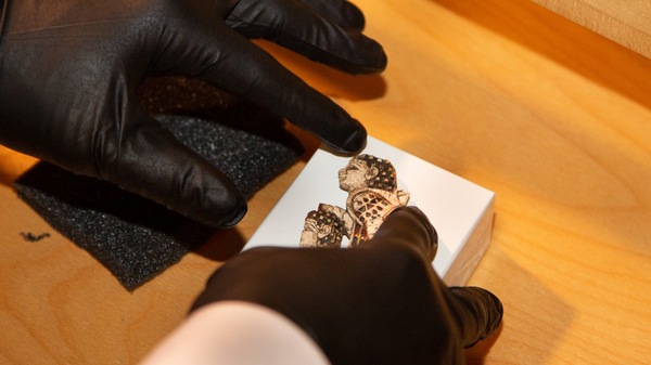 وبحسب ما نشره المكتب الفدرالي فأن القطعة العاجية تُظهر مجسماً لأبو الهول، وهي مزينة، وقد تم عرضها في متحف كارلوس في جامعة إيموري في أتلانتا.