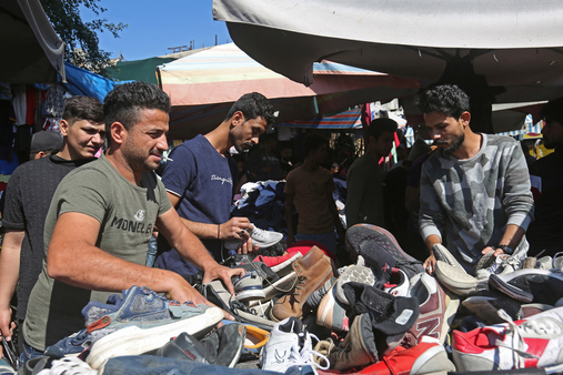 وسط تلال من الثياب المستعملة المكدّسة على بسطات أو داخل متاجر، كان طالب الهندسة محمد علي البالغ من العمر 20 عاماً يبحث مع صديقه عن حذاء.