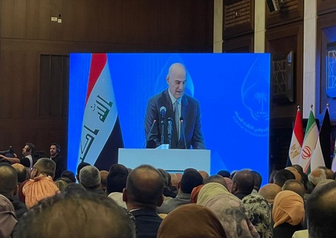 جاء ذلك في كلمة له خلال مؤتمر بغداد الدولي الثالث للمياه، والذي انطلق اليوم السبت في بغداد، تحت شعار (شحة المياه، أهوار وادي الرافدين، بيئة شط العرب، مسؤولية الجميع)، حيث قال فيها: