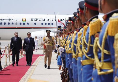 وشهدت مراسم الاستقبال عزف النشيدين الوطنيين العراقي والمصري، واستعراض حرس الشرف.