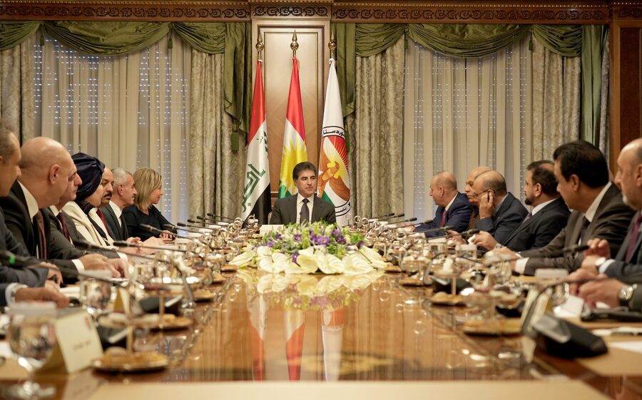 وجرى الاجتماع بحضور الممثلة الخاصة للأمين العام للأمم المتحدة في العراق، جينين بلاسخارت، ونائبي رئيس الإقليم، والفريق المختص في اليونامي، ورئيس وأعضاء مجلس المفوضين العراقي.