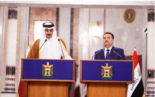 ورعى رئيس مجلس الوزراء العراقي، محمد شياع السوداني وأمير دولة قطر، الشيخ تميم بن حمد آل ثاني، اليوم الخميس، مراسم التوقيع على الإعلان.