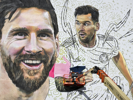اتخذ جنون ميسي أشكالًا أخرى في حي وينوود الفني في ميامي، مثل الصورة الضخمة للاعب التي رسمها مواطنه ماكيسميليانو بانياسكو ووضعت على واجهة احد المباني. أنهى الفنان الارجنتيني الخطوة الأولى، وجه لاعب كرة القدم المبتسم، لكنه سينتقل الآن إلى الخطوة التالية: جسم اللاعب بألوانه الجديدة.