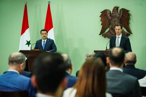 وقال السوداني خلال المؤتمر الصحفي المشترك مع الرئيس السوري، بشار الأسد، الذي عُقد في العاصمة السورية دمشق اليوم الأحد، إن "العراق وسوريا مترابطان تاريخياً واجتماعياً وجغرافياً، والأمن والاستقرار يدفعان بالبلدين نحو المزيد من التعاون والتنسيق لمواجهة كل المخططات والتحديات"، مشيراً الى موقف العراق "الداعم لوحدة أراضي الدولة السورية، وبسط القانون على كامل أراضيها، هو موقف مبدئي، ومسألة تخص الأمن القومي العراقي أولاً".
