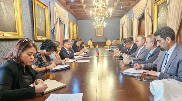 وذكر بيان للوزارة أن "السفير حيدر البراك رئيس دائرة أمريكا، والوفد المُرافق له، التقى خوان سانتانا نائب وزير النفط الفنزويليّ، يوم امس الثلاثاء، وجرى خلال اللقاء استعراض العلاقات المتميزة في مجال الطاقة والتأكيَّد على ضرورة التنسيق عالي المُستوى بين البلدين في اوبك واوبك بلس".