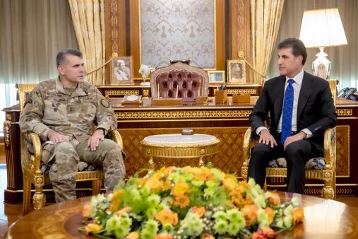 استقبل رئيس إقليم كوردستان نيجيرفان بارزاني، مساء اليوم الأربعاء 19 تموز 2023، القائد العام لقوات التحالف الدولي في العراق وسوريا الجنرال ماثيو مكفارلن، ووفداً مرافقاً له.