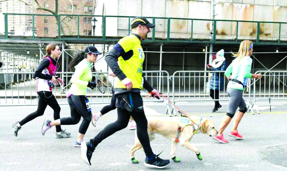 أكمل عداء كفيف سباق نصف الماراثون الذي تنظمه "يونايتد إيرلاينز" في مدينة نيويورك لهذا العام، والذي يمتد لما يفوق 21 كيلومترا، فيما يقل قليلا عن ساعتين ونصف الساعة، ليكون أول عداء كفيف يكمل السباق بمساعدة فريق من كلاب الارشاد، بدلا من أن يساعده عداؤون آخرون، في السباق الذي شارك فيه نحو 20 ألف عداء الأحد في يوم القديس باتريك ، ومر عبر ساحة التايمز الشهيرة في نيويورك، وفقا لموقع نادي" نيويورك نارنز"