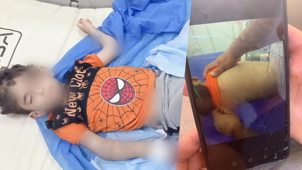 وأضاف الجد: "علمنا أنه كان يُعنّف على يد أبيه وزوجته ولمدة أربعة أشهر.. كان يُضرب بـ"كتر" وآلات حادة أخرى"، مبيناً أن "الطفل يعاني من فطر بالجمجمة ونزيف بالرأس".