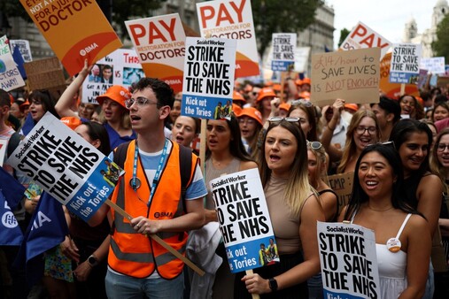 بدأ آلاف الأطباء في المستشفيات الإنكليزية الجمعة إضرابا لمدة أربعة أيام للمطالبة بتحسين الأجور في مواجهة التضخم الذي لا يزال مرتفعا في البلاد، في تحرك اجتماعي آخر داخل نظام الخدمة الصحية الوطنية (ان اتش اس)الذي يشهد أزمة.