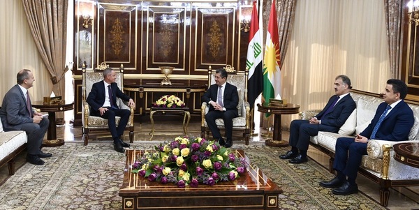 استقبل رئيس حكومة إقليم كوردستان مسرور بارزاني، اليوم الأربعاء (16 آب 2023)، القائم بالأعمال في السفارة الفرنسية لدى العراق جان كريستوف.