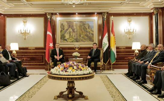 استقبل رئيس إقليم كوردستان نيجيرفان بارزاني، صباح اليوم الخميس (24 آب 2023)، وزير الخارجية التركي هاكان فيدان.