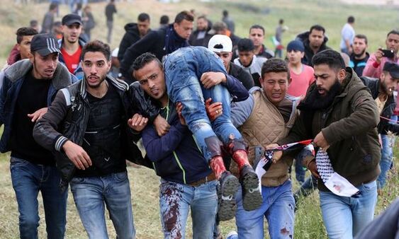 جاء ذلك في احتجاجات تتجدد كل يوم جمعة منذ نحو شهر تحت عنوان "مسيرة العودة الكبرى" التي تدعو لعودة اللاجئين الفلسطينيين إلى منازل أسلافهم الموجودة الآن في إسرائيل.