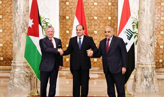 عقد رئيس الوزراء العراقي عادل عبد المهدي، مع الرئيس المصري عبد الفتاح السيسي، والعاهل الاردني الملك عبد الله الثاني، قمةً ثلاثية، اليوم الاحد، في العاصمة المصرية القاهرة، حيث تم التأكيد على أهمية العمل لتعزيز مستوى التنسيق بين الدول الثلاث والاستفادة من الامكانات التي يتيحها تواصلها الجغرافي وتكامل مصالحها الاستراتيجية والاقتصادية.