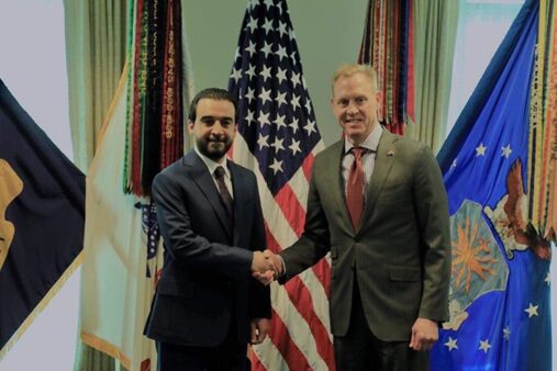 التقى رئيس مجلس النواب محمد الحلبوسي يرافقه وفد نيابي وزير الدفاع الأميركي باتريك شاناهان، يوم أمس الأربعاء، حيث جرت مراسم الاستقبال الرسمية في البنتاغون،