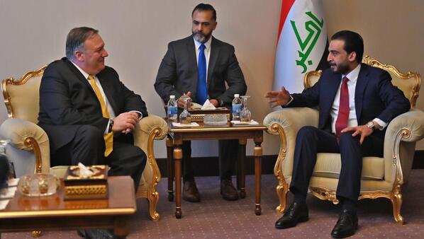 وجاء في بيان لمكتب الحلبوسي أنه "في مستهل اللقاء رحب وزير الخارجية مايك بومبيو برئيس مجلس النواب، معربا عن سروره باللقاء وتطوير العلاقات الثنائية والتواصل بين واشنطن وبغداد".