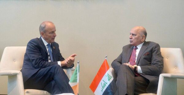 بحث نائب رئيس مجلس الوزراء وزير الخارجيَّة العراقي فؤاد حسين مع وزير خارجية أيرلندا ميشيل مارتن، الأوضاع الراهنة في منطقة الشرق الأوسط، وانعكاسها على العراق والعالم بأسره.