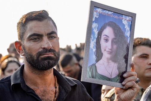 في المقبرة في قرقوش، وأمام المدافن العائلية المرصوصة بعضها قرب بعض، وقف رجال ونساء يبكون بحرقة ويعبّرون بأصوات مرتجفة عن عمق الألم الذي يشعرون به. وركعت امرأة لتقبّل صورة شابة زيّنت بالورود.