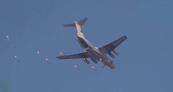 ووفقا للبيان، قام أكثر من 100 عسكري من القوات الخاصة السورية بالقفز بواسطة مظلات "أرباليت-2" مع معداتهم القتالية- البنادق الآلية وقاذفات قنابل يدوية من طراز RPG-7D وRPG-26 وقاذفات قنابل آلية AGS-17 من ارتفاع 4 آلاف متر وخلال التحليق نحو الأرض قطعوا مسافة 8 كم من نقطة القفز.