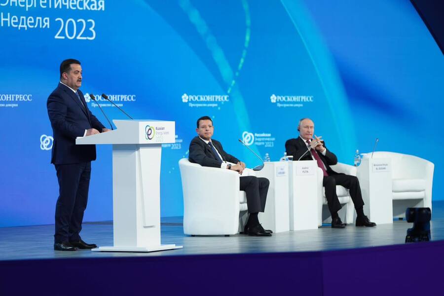 جاء ذلك خلال مشاركة السوداني في منتدى أسبوع الطاقة الروسي REW بدورته السادسة، بدعوة من الرئيس الروسي، والمنعقدة بالعاصمة موسكو، التي يزورها حالياً بدعوة رسمية من الرئيس فلاديمير بوتين "من أجل توسعة آفاق التعاون والشراكة في مجال الطاقة، وتطوير مجالات استثمار الغاز العراقي، وفق ما تبناه البرنامج الحكومي بخصوص هذا القطاع، بالإضافة إلى استقطاب الشركات الراغبة بالاستثمار في العراق وإدخال التكنولوجيا المتقدّمة، فضلاً عن تعزيز مسارات تنمية الطاقات البديلة والمتجددة".