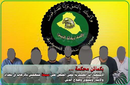 وذكرت المديرية في بيان اطلعت عليه زاكروس عربية: أنه "وفقاً لمعلومات استخبارية دقيقة لشعب الفرق (7 و10 و14 و16 و17) التابعة إلى مديرية الاستخبارات العسكرية، وبالتعاون مع القوات الأمنية ضمن قواطع العمليات، تم نصب كمائن محكمة في مناطق متفرقة من بغداد والأنبار ونينوى وصلاح الدين، أسفرت عن إلقاء القبض على 7 متهمين بالإرهاب وفق احكام المادة 4 إرهاب في قضاء الكرمة وعنه والموصل وناحيتي الزاب السفلى والرشيد، الذين ينتمون إلى عصابات داعش الإرهابية".