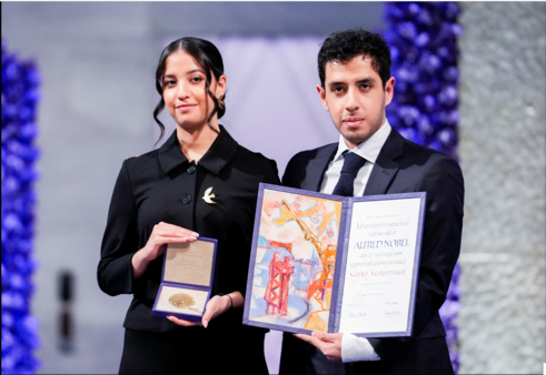 ندّدت الناشطة الإيرانية نرجس محمدي، المسجونة في طهران، بنظام بلادها "الديني المستبدّ والمناهض للمرأة"، وذلك في كلمة ألقاها نيابة عنها ولداها، اليوم الأحد خلال حفل تسليمها جائزة نوبل للسلام في أوسلو.