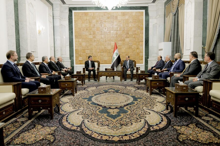 وكانت الهجمات بالمسيرات على إقليم كوردستان، وعلاقات العراق مع دول الجوار، وتهديدات داعش، وتداعيات الحرب في غزة على المنطقة بصورة عامة، مواضيع البحث في محور آخر من الاجتماع.