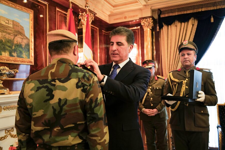 في مراسم جرت اليوم (الأربعاء، 7 شباط 2024) برئاسة إقليم كوردستان، قلد نيجيرفان بارزاني رئيس إقليم كوردستان، خمسة من كبار ضباط وزارة شؤون البيشمركة رتبهم الجديدة بعد توقيعه على قرارات ترقيتهم إلى رتب لواء ركن ولواء.