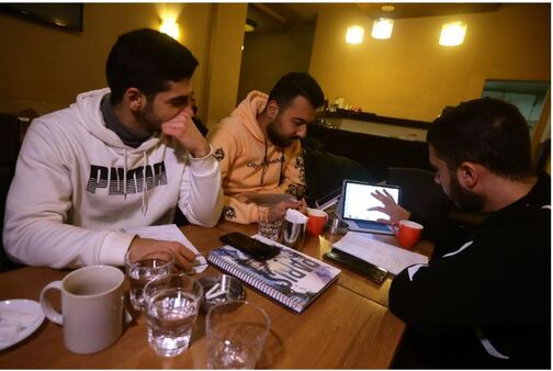 في منطقة باب توما المعروفة بحاناتها ومقاهيها في شرق دمشق، تحوّل مقهى إلى قاعة دراسة يسودها الهدوء.