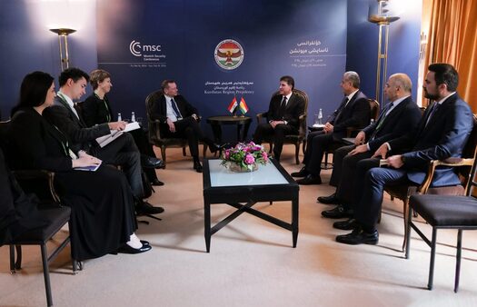 في آخر لقاء له بمؤتمر ميونخ للأمن جرى ظهر اليوم (الأحد، 18 شباط 2024)، التقى رئيس إقليم كوردستان، نيجيرفان بارزاني بمستشاري الرئيس الفرنسي للشؤون الدبلوماسية إيمانوئيل بون وآن كلير لوجاندر، وتباحث معهما في علاقات فرنسا مع العراق وإقليم كوردستان وأوضاع العراق والمنطقة.