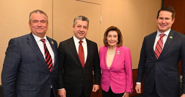 بدورها عبّرت بيلوسي عن سعادتها بزيارة رئيس الحكومة إلى أميركا، كما أكدت على احترامها وتقديرها لشجاعة ونضال وتضحيات شعب كوردستان.
