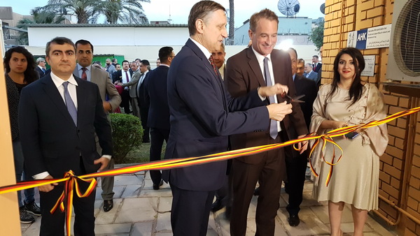 وقد قام كل من السفير الألماني لدى العراق د. سيريل نون، و المدير الإقليمي لغرف التجارة الألمانية في الخارج فيلكس نويكارت، بقص شريط افتتاح المكتب في حفل استقبال، حضره ممثلي الحكومة العراقية والشركات العراقية والألمانية.