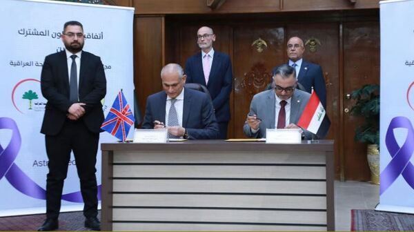 وجرى التوقيع بحضور وزير الصحة العراقي صالح الحسناوي، والسفير البريطاني لدى بغداد ستيفن هيتشن، حيث قال الحسناوي: إن "مجلس السرطان في وزارة الصحة وقع مذكرة تفاهم خاصة بعلاجات السرطان مع شركة استرازينيكا العالمية، بهدف تبادل الخبرات وتدريب الأطباء العراقيين، وتوفير العلاجات، بالإضافة إلى تحديث منظومة علاج السرطان في العراق".