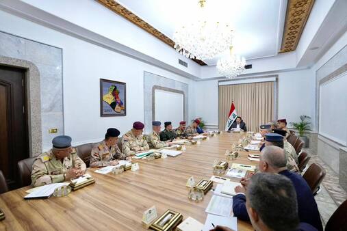 وشهد الاجتماع البحث في أهمّ الإجراءات المتخذة لدعم القدرات القتالية والميدانية للقطعات المسلحة التابعة لوزارة الدفاع، في إطار المضي "باستراتيجية الحكومة الساعية إلى تمكين وتطوير قابليات قواتنا المسلحة والتشكيلات الأمنية، والتأكيد على أهمية تنويع مصادر التسليح، ورفع الكفاءة التكنولوجية في مختلف الصنوف والوحدات الفعالة".