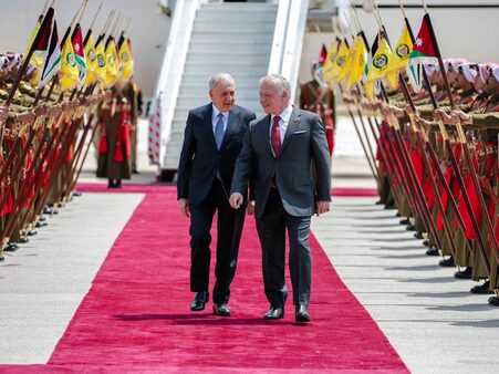 أضاف الملك أن الأردن يتطلع إلى بناء علاقات راسخة مع العراق وبما يخدم المصالح المتبادلة ويعزز الدور المحوري للبلدين في تعزيز فرص السلام، لافتا جلالته إلى الأواصر والروابط الأخوية والاجتماعية والتاريخية التي تربط الشعبين العراقي والأردني.