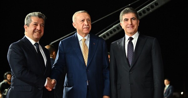 واستقبل رئيس إقليم كوردستان ورئيس الحكومة، في مطار أربيل الدولي، مساء اليوم الاثنين 22 نيسان 2024، رئيس الجمهورية التركية رجب طيب أردوغان والوفد المرافق له.