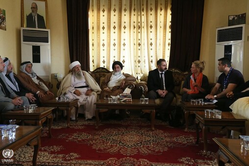 زارت الممثلة الخاصة للأمين العام للأمم المتحدة في العراق جينين هينيس-بلاسخارت، الزعيم الروحي الأعلى للأيزيديين وعضو المجلس الروحاني الأيزيدي، بابا شيخ، ومعه أعضاء المجلس الآخرين في شيخان، وبعد ذلك مباشرةً، وصلت هينيس-بلاسخارت إلى جبل سنجار لمناقشة التحديات والعقبات مع قادة وأفراد المجتمع هناك، وحثت الكورد الايزيديين الى توحيد ادارتها وتجاوز الخلافات من اجل الاسراع في اعادة النازحين واعمار القضاء.
