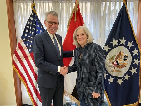 وقالت السفيرة الأمريكية، إلينا رومانوسكي، عبر منصة إكس "يسعدني أن أرحب بـمساعد وزير الخارجية لمكتب موارد الطاقة، جيفري بيات، في العراق، حيث يبدأ زيارة مهمة لمتابعة زيارة رئيس الوزراء السوداني الناجحة إلى واشنطن الشهر الماضي، وتعزيز تعاوننا الثنائي في مجال الطاقة".