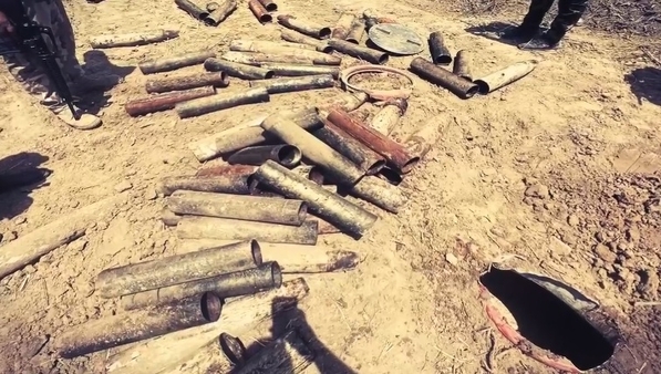 تابع البيان، أن "قوة من الجهاز تحركت على الفور وعثرت على عدد كبير من الأسلحة التي شملت (24) مقذوفةً عيار (122) ملم، و(83) أنبوباً فولاذياً تستخدم جميعها في صناعة العبوات الناسفة كانت مخبأة تحت الأرض".