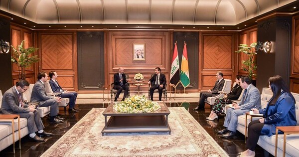 استقبل رئيس حكومة إقليم كوردستان مسرور بارزاني، اليوم الأربعاء (5 حزيران 2024)، السفير البريطاني لدى العراق، ستيفن هيتشن.