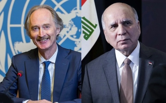 بحث وزير الخارجية العراقي فؤاد حسين والمبعوث الخاص للأمين العام للأمم المتحدة إلى سوريا جير أو. بيدرسن، مساء أمس الثلاثاء، إيجاد تسوية شاملة ومستدامة للأزمة السورية، في اتصال هاتفي، حيث أكدا على أهمية السعي المشترك نحو إيجاد تسوية شاملة ومستدامة للأزمة السورية.