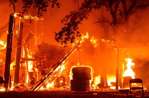 ويتمدّد الحريق بسرعة رجل يمشي، في منطقة ريفية تقع على بعد ثلاث ساعات بالسيارة شمال شرق سان فرانسيسكو.