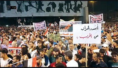 وأبدى المتظاهرين إن "التظاهرة هذه هي ضد الحرب في داخل العراق بين أمريكا وإيران"، مشيرين أنهم يرغبون بهذه الحروب لأن العراق تعب وضحى بأغلى ما يملك من أجل إحياء هذا الوطن... فليذهبوا ويحاربوا خارج العراق".