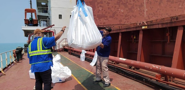 وذكر بيان للشركة العامة لتجارة المواد الغذائية في الوزارة، أن "الباخرة (MV BLUE RAY) وصلت للمياه الإقليمية، محملةً بـ41500 طن من مادة الرز التايلندي لحساب مفردات السلة الغذائية".