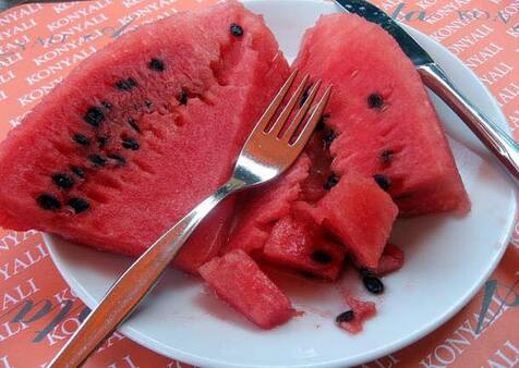 رغم أن البطيخ يحتوي على ما نسبته 92 في المئة من الماء، فإن له فوائد صحية عديدة، وكل قضمة منه تحتوي على فيتامين "إيه" "وسي" ومضادات للأكسدة وأحماض أمينية، ويقال إنه كلما كان البطيخ أكثر نضجا، ازداد مستوى الليكوبين والبيتا كاروتين فيه.