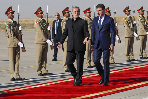 استقبل رئيس إقليم كوردستان، نيجيرفان بارزاني، صباح اليوم الخميس (12 أيلول 2024)، الرئيس الإيراني مسعود بزيشكيان، لدى وصوله إلى أربيل في مستهل زيارة رسمية إلى الإقليم.