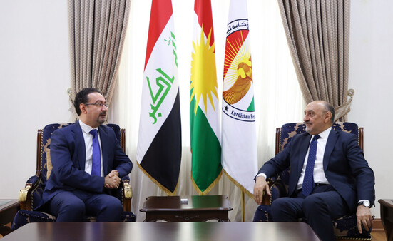 وفي اللقاء الذي حضره نائب رئاسة الإقليم لشؤون السياسة الخارجية فلاح مصطفى، تم تبادل وجهات النظر حول "الوضع المحلي والوضع العام في المنطقة" والتأكيد على "العودة إلى الحوار لحل المشاكل الراهنة"، وفق البيان.