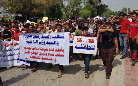 نقل مصادر من موقع الحدث ان "العشرات من اهالي محافظة ديالى نظموا، اليوم الثلاثاء، تظاهرة حاشدة امام مقر قيادة شرطة المحافظة، وان المتظاهرين ناشدوا القائد العام للقوات المسلحة عادل عبد المهدي، بالمطالبة بإعفاء قائد شرطة المحافظة اللواء فيصل كاظم العبادي من منصبه بسبب وجود ملفات فساد وتردي الوضع الامني، وخاصة في قريتي أبو خنازير والمخيسة، اللتان غادراهما قرابة 600 عائلة فارّين من الإنفلات الأمني وتكثيف الجماعات المسلحة لنشاطها في تلك المناطق".